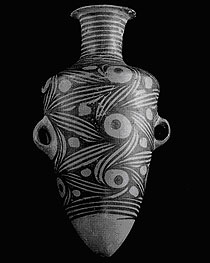 “彩陶”是指一種繪有黑、紅色裝飾花紋的紅褐色或棕黃色陶器。彩陶多用手工捏制,然后打磨繪色,再入窯燒制。彩陶造型優(yōu)美,裝飾精巧,反映了先民的藝術(shù)創(chuàng)造力。