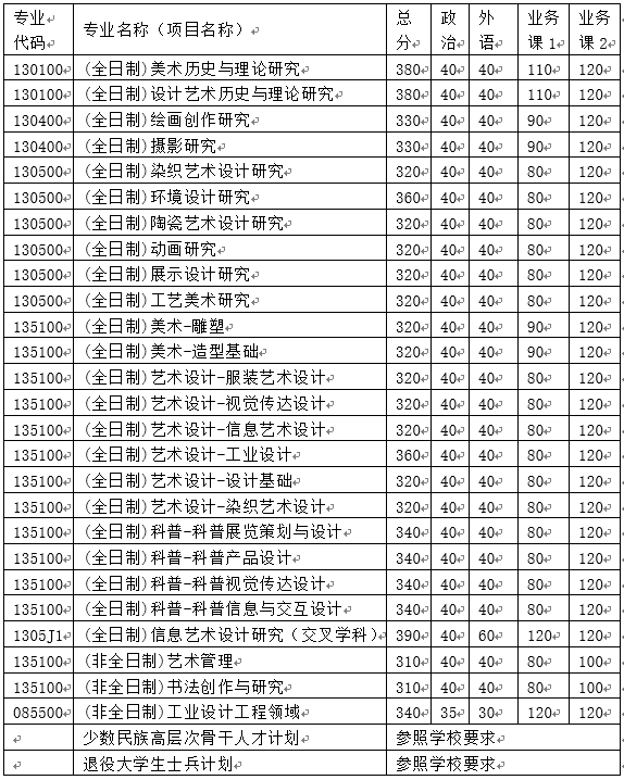 ② 【130500】設計學、【130400】美術學及【135100】藝術(不含非全日制、科普碩士)專業(yè)按不同研究方向分別在專業(yè)系內進行總成績排序,從高至低擇優(yōu)錄取。