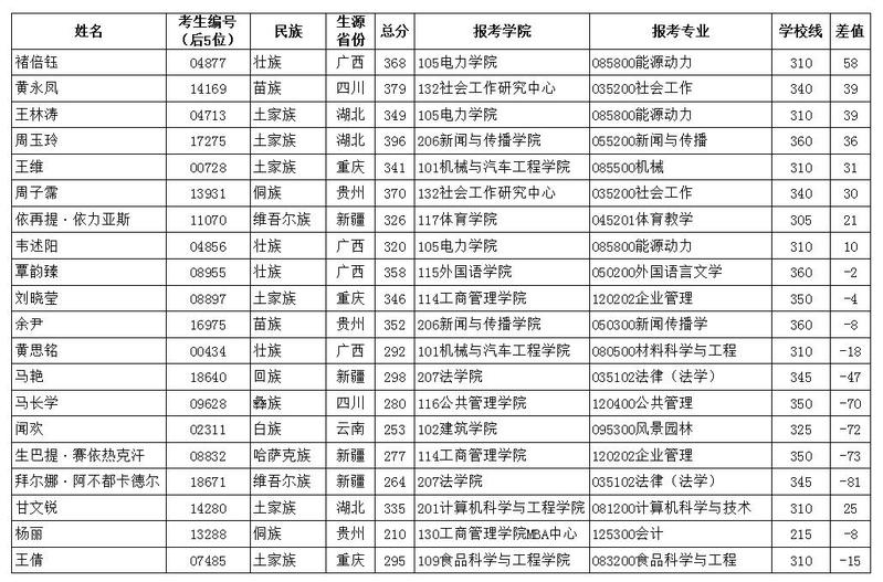 華南理工大學2020年“少數(shù)民族高層次骨干人才計劃”考研復試名單