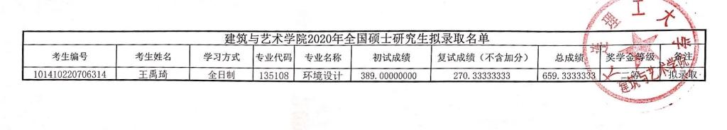 大連理工大學(xué)建筑與藝術(shù)學(xué)院2020年考研擬錄取名單公示 發(fā)布時(shí)間:2020-05-17 大連理工大學(xué)建筑與藝術(shù)學(xué)院2020年考研擬錄取名單公示 上一篇:大連理工大學(xué)建筑與藝術(shù)學(xué)院2020年考研復(fù)試成績公示 下一篇:大連理工大學(xué)建筑與藝術(shù)學(xué)院2021年考研招生目錄及參考書目