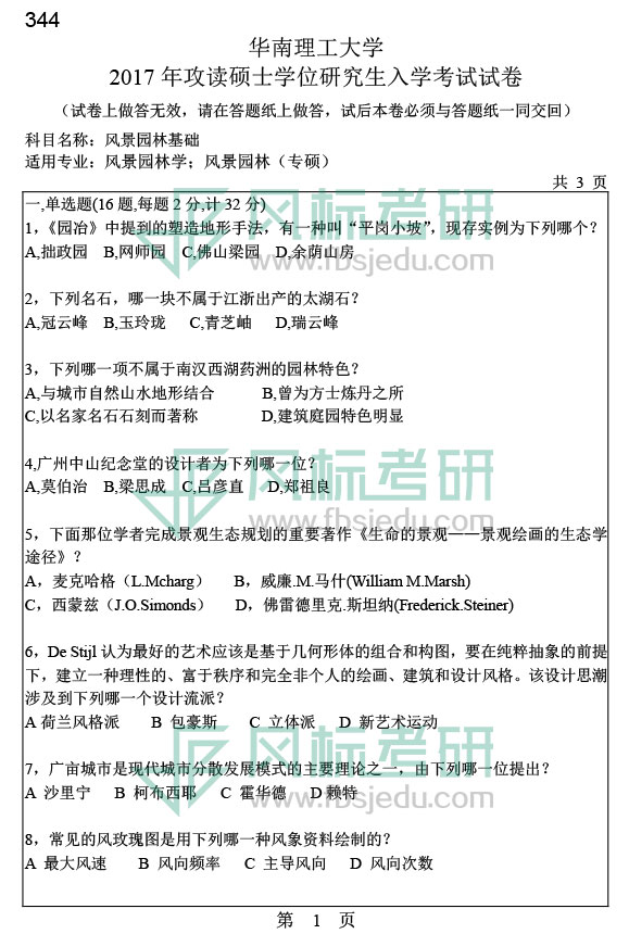 華南理工大學(xué)風(fēng)景園林考研2017年真題:344風(fēng)景園林基礎(chǔ) 發(fā)布時(shí)間:2020-12-04 華南理工大學(xué)風(fēng)景園林考研2017年真題:344風(fēng)景園林基礎(chǔ) 上一篇:華南理工大學(xué)設(shè)計(jì)學(xué)院工業(yè)設(shè)計(jì)考研2017年真題:337設(shè)計(jì)理論(工業(yè)設(shè)計(jì)工程) 下一篇:華南理工大學(xué)設(shè)計(jì)學(xué)考研2017年真題:506命題設(shè)計(jì)