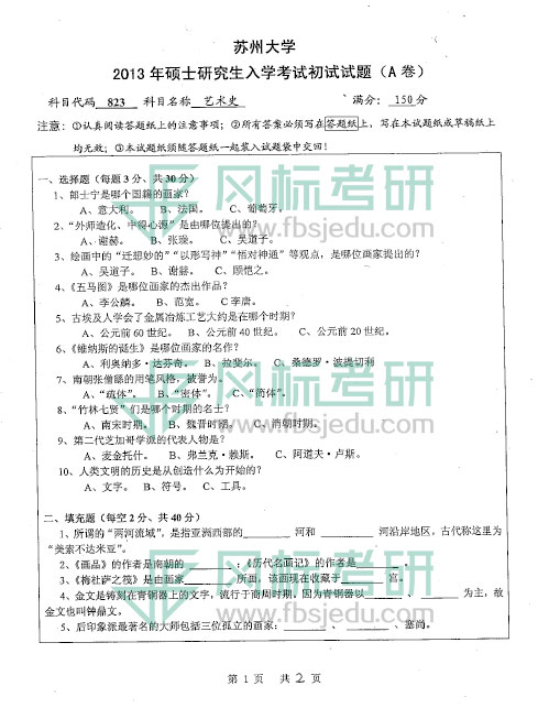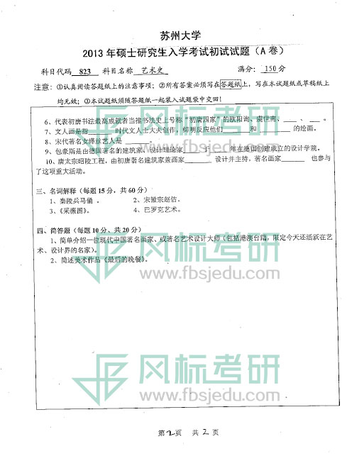 蘇州大學(xué)藝術(shù)學(xué)院設(shè)計(jì)學(xué)、藝術(shù)設(shè)計(jì)考研2013年考研真題:823藝術(shù)史