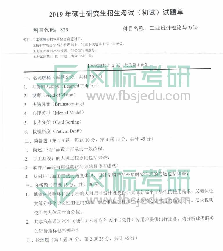 西南科技大學(xué)工業(yè)設(shè)計工程考研2019年真題:823工業(yè)設(shè)計理論與方法