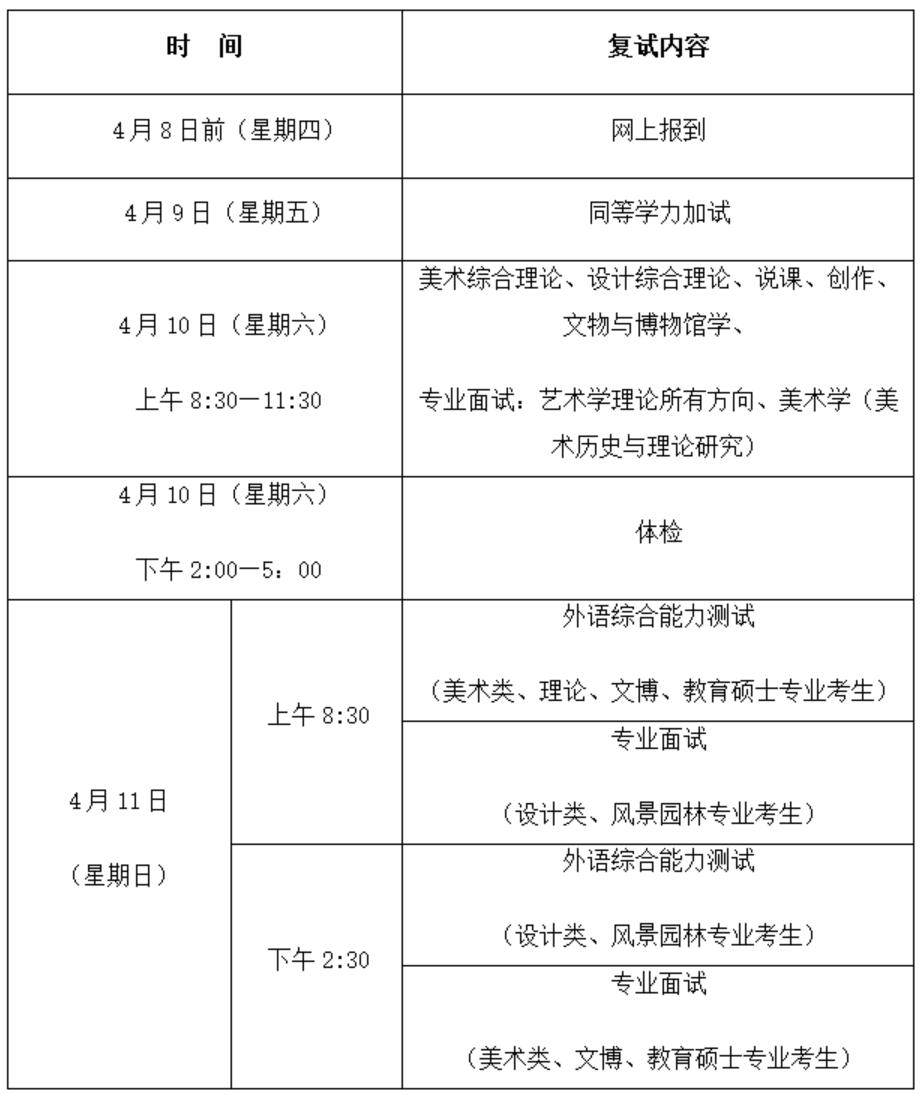 根據(jù)《教育部關(guān)于做好2021年全國碩士研究生招生錄取工作的通知》,結(jié)合我校實際,定于4月9日-11日安排復試,具體時間安排見下表:
