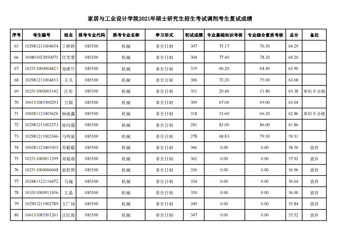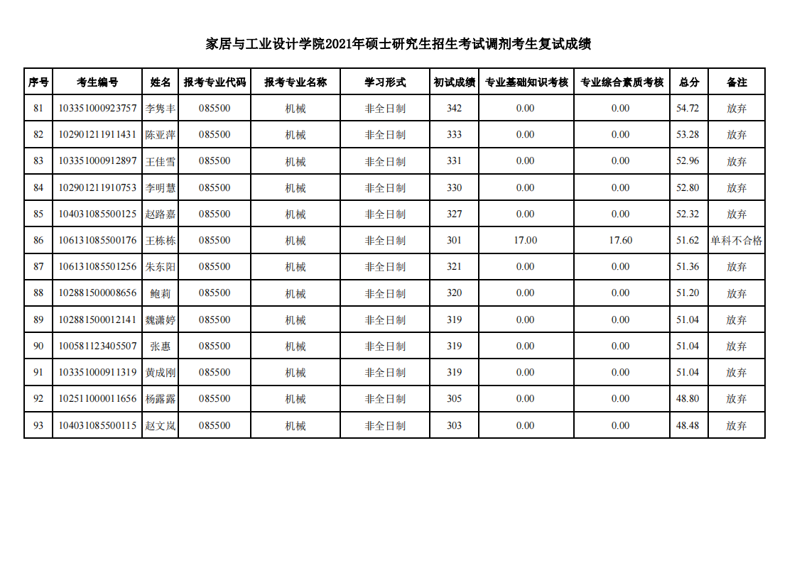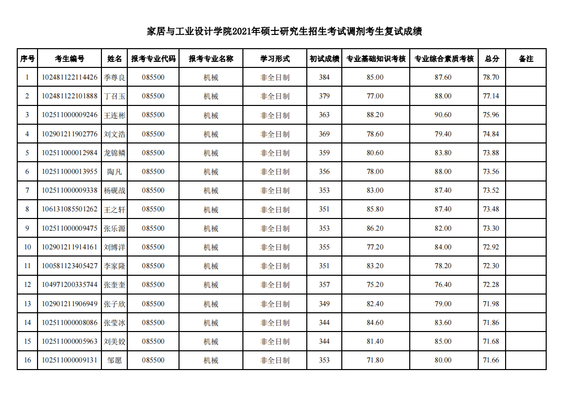 南京林業(yè)大學(xué)家居與工業(yè)設(shè)計(jì)學(xué)院2021年考研調(diào)劑復(fù)試成績公示