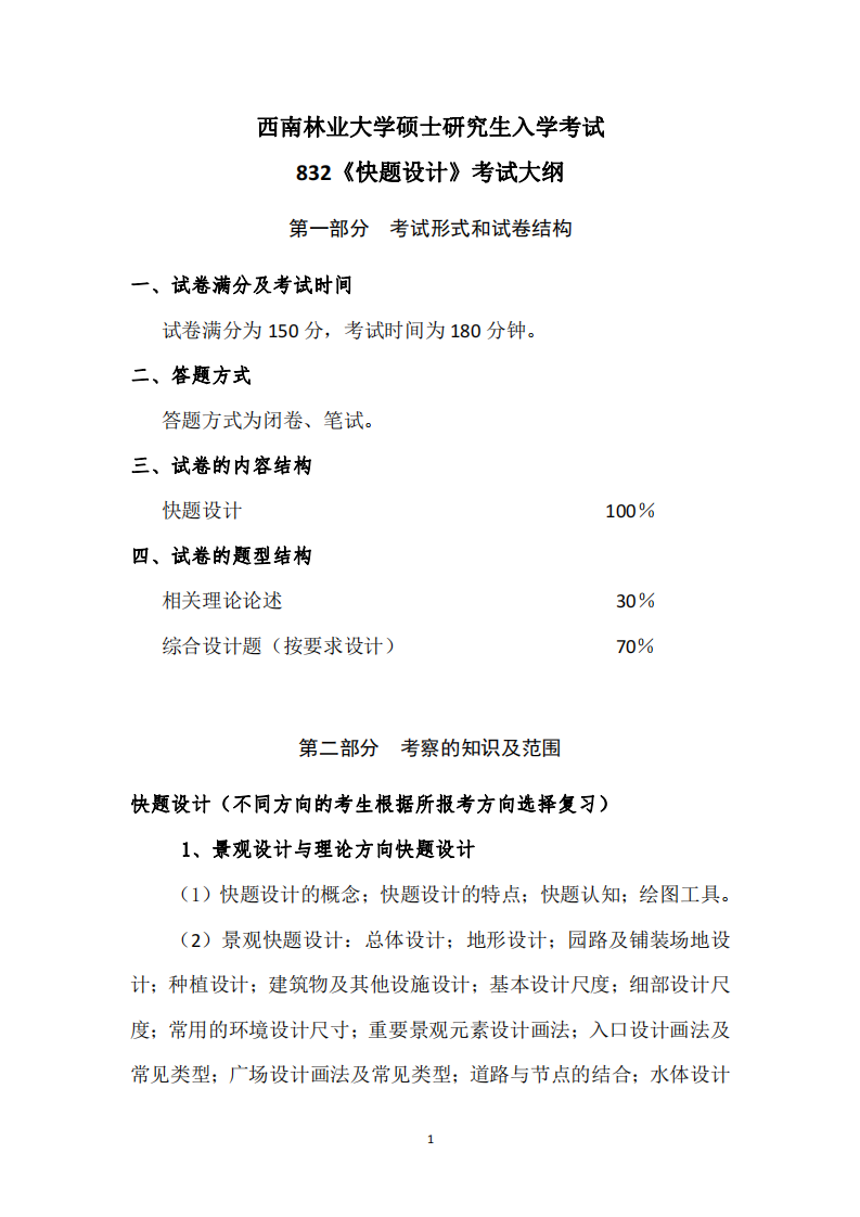 西南林業(yè)大學(xué)2021年考研考試大綱-832快題設(shè)計 發(fā)布時間:2020-09-18 西南林業(yè)大學(xué)2021年考研考試大綱-832快題設(shè)計 上一篇:西南林業(yè)大學(xué)2021年考研考試大綱-718設(shè)計史 下一篇:西南林業(yè)大學(xué)2021年推免生(保研)名單公示