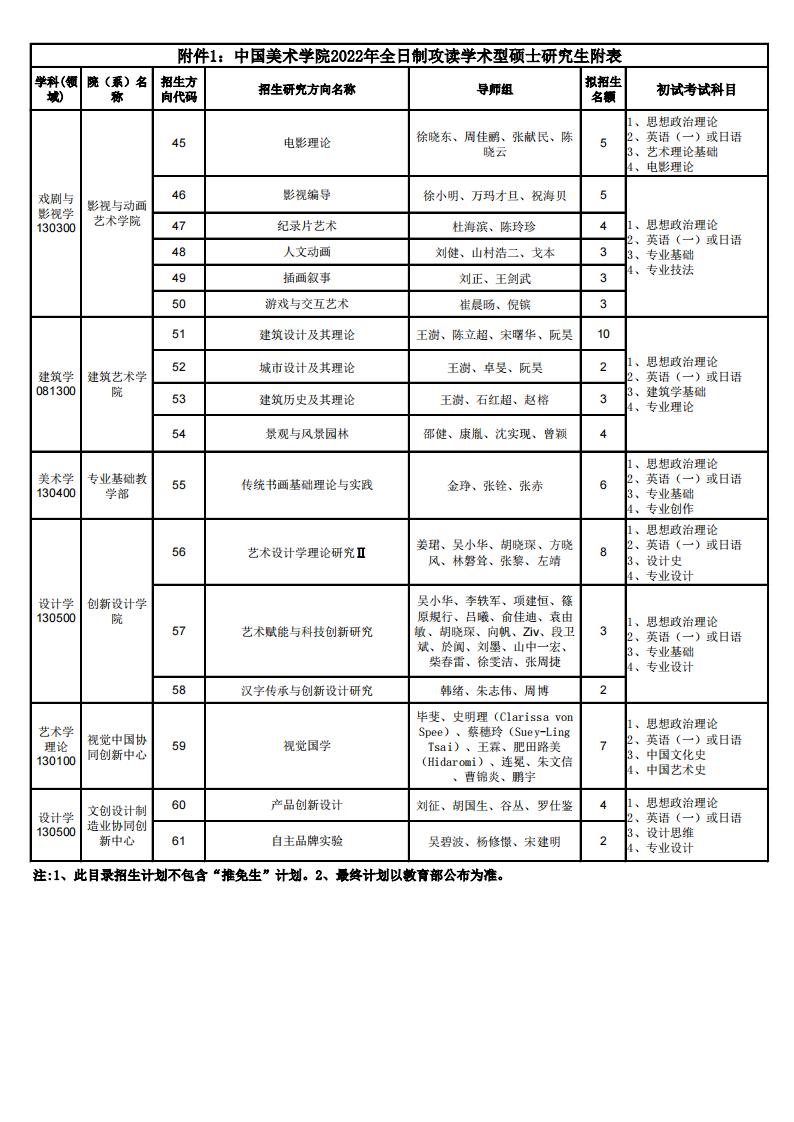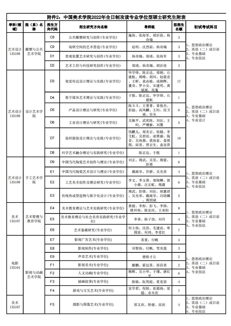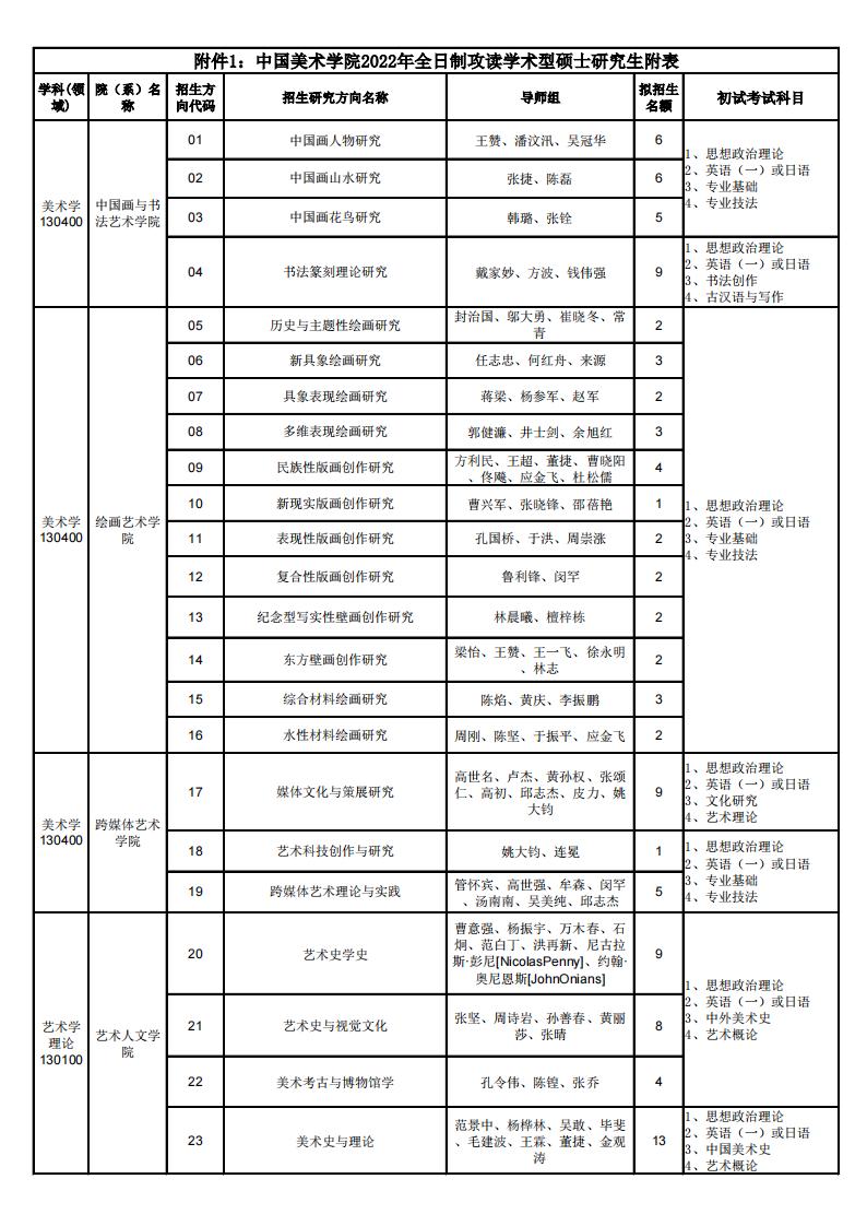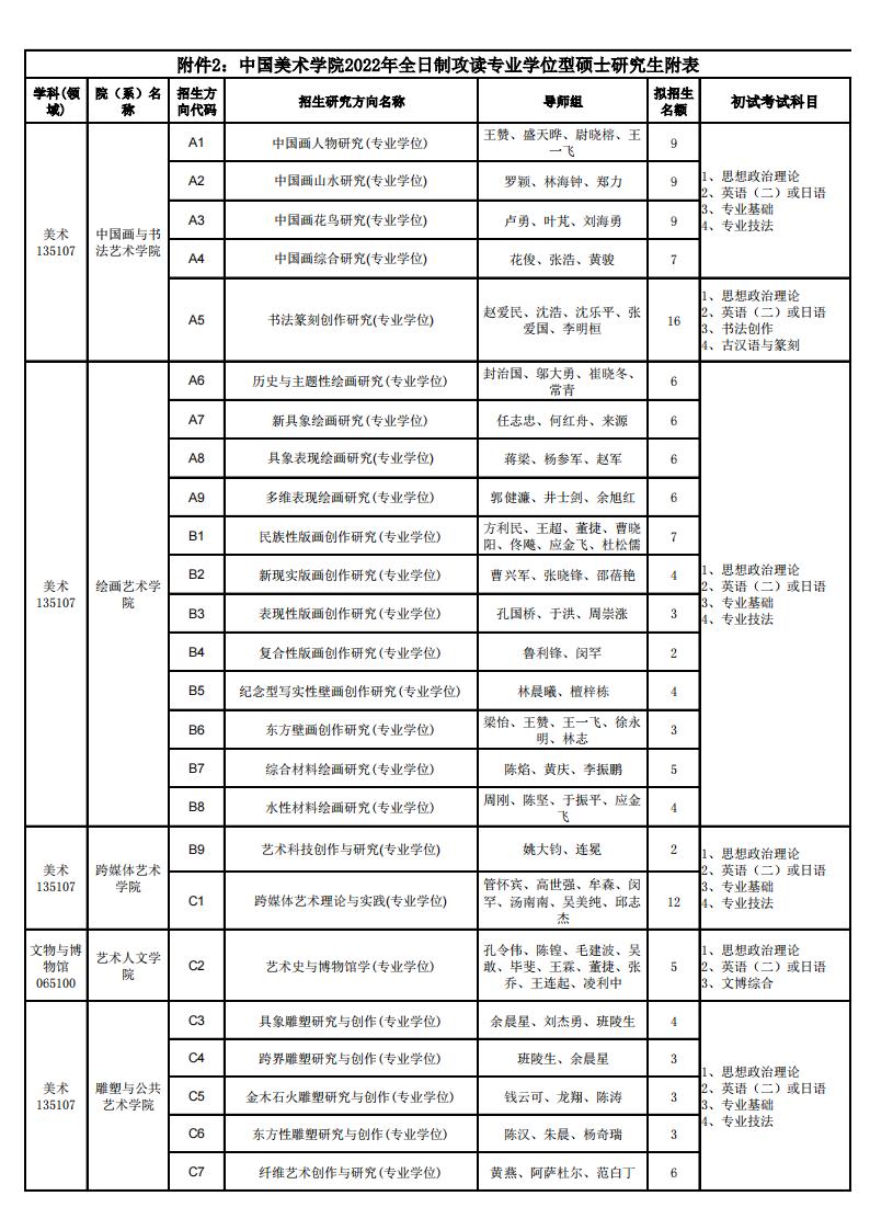 中國(guó)美術(shù)學(xué)院2022年考研招生目錄(全日制) 發(fā)布時(shí)間:2021-09-16 上一篇:中國(guó)美術(shù)學(xué)院2021年考研復(fù)試考試須知 下一篇:中國(guó)美術(shù)學(xué)院2022年考研招生目錄(非全日制)