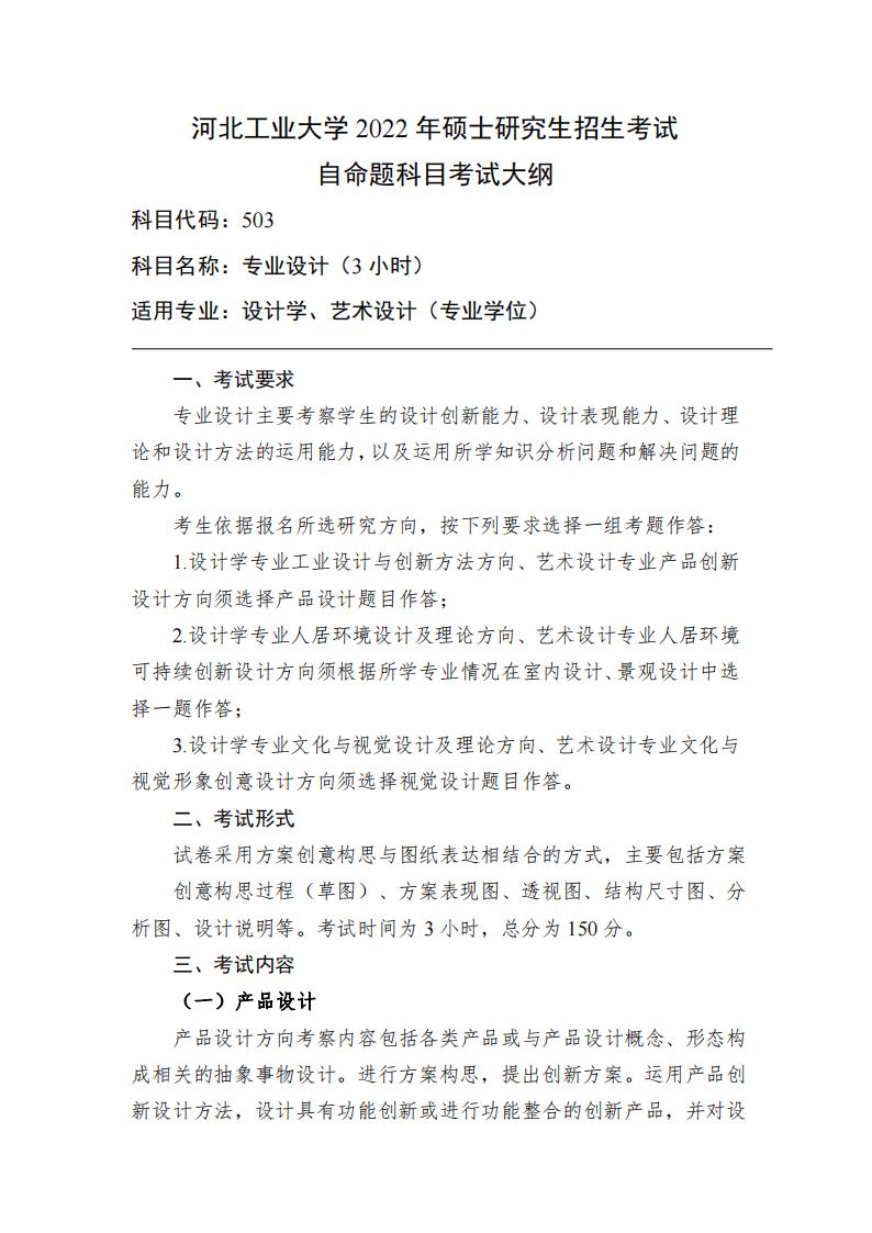 河北工業(yè)大學(xué)2022年考研考試大綱:503專業(yè)設(shè)計(jì)(3小時(shí)) 發(fā)布時(shí)間:2021-09-17 上一篇:河北工業(yè)大學(xué)2022年考研考試大綱:931設(shè)計(jì)理論 下一篇:河北工業(yè)大學(xué)2022年考研考試大綱:733設(shè)計(jì)理論