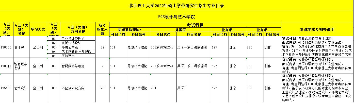 北京理工大學(xué)設(shè)計(jì)與藝術(shù)學(xué)院2022年考研招生目錄