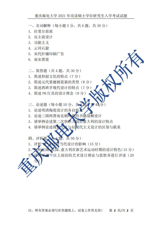 重慶郵電大學藝術學院2021年考研真題:821藝術設計理論(A) 發(fā)布時間:2021-10-04 上一篇:重慶郵電大學傳媒藝術學院2022年考研招生目錄及參考書目 下一篇:重慶郵電大學藝術學院2021年考研真題:613藝術綜合