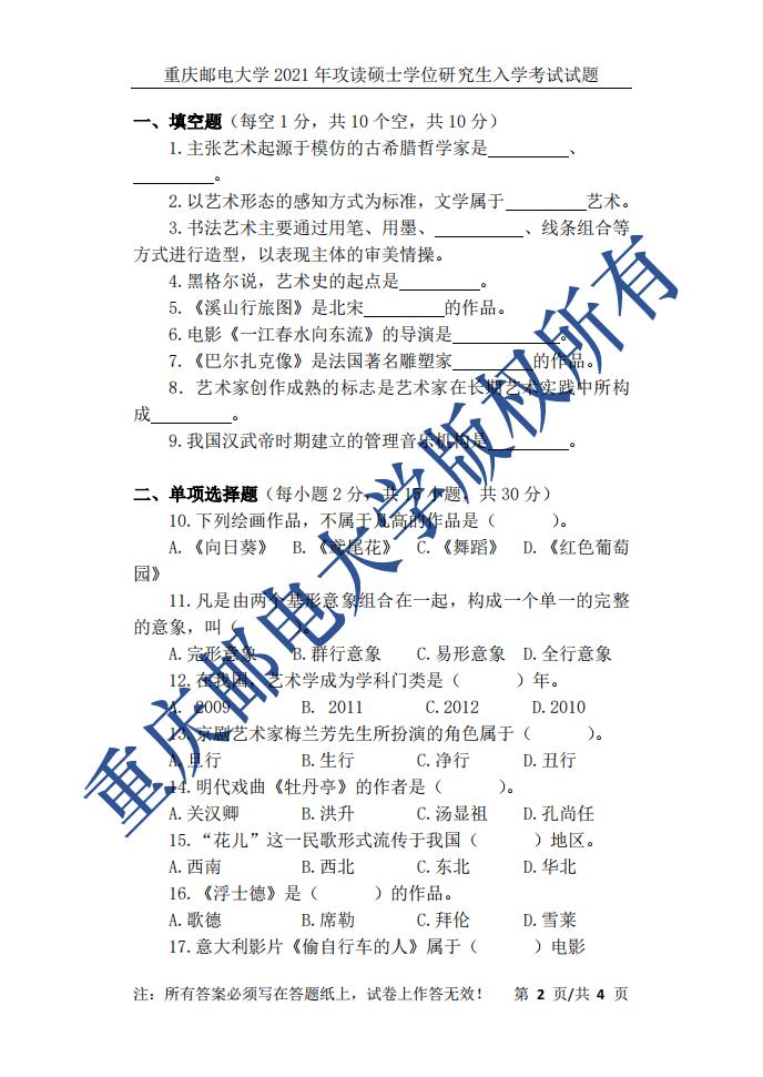 重慶郵電大學(xué)藝術(shù)學(xué)院2021年考研真題:613藝術(shù)綜合 發(fā)布時間:2021-10-04 上一篇:重慶郵電大學(xué)藝術(shù)學(xué)院2021年考研真題:821藝術(shù)設(shè)計(jì)理論(A) 下一篇:重慶郵電大學(xué)2022年考研復(fù)試分?jǐn)?shù)線