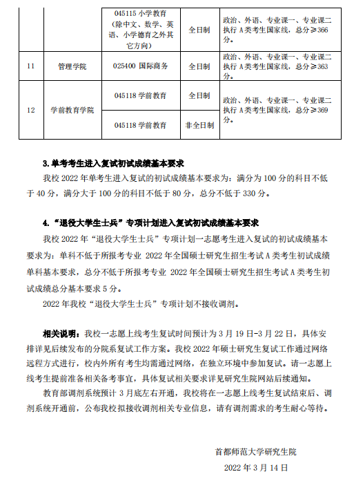 首都師范大學2022年考研復試分數線發(fā)布 發(fā)布時間:2022-03-15 首都師范大學2022年考研復試分數線發(fā)布 上一篇:首都師范大學關于2022年考研初試成績查詢等工作的通知 下一篇:首都師范大學2022年考研復試有關安排、模擬面試及資格審查工作的說明