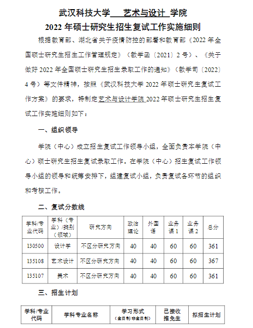 武漢科技大學藝術(shù)與設計學院2022年考研復試分數(shù)線及招生人數(shù) 發(fā)布時間:2022-03-30 武漢科技大學藝術(shù)與設計學院2022年考研復試分數(shù)線及招生人數(shù) 上一篇:武漢科技大學藝術(shù)與設計學院2022年考研考試大綱:?619 設計學專業(yè)史論 下一篇:武漢科技大學藝術(shù)與設計學院2022年考研復試名單公示