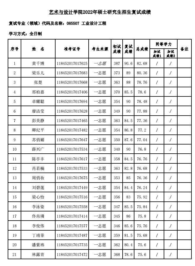 廣東工業(yè)大學(xué)藝術(shù)與設(shè)計(jì)學(xué)院2022年考研復(fù)試成績公示(工業(yè)設(shè)計(jì)工程)
