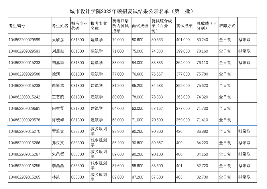 武漢大學城市設計學院2022年考研擬錄取名單 發(fā)布時間:2022-04-02 武漢大學城市設計學院2022年考研擬錄取名單 上一篇:武漢大學2022年考研復試分數線發(fā)布 下一篇:武漢大學城市設計學院2022年考研調劑公告