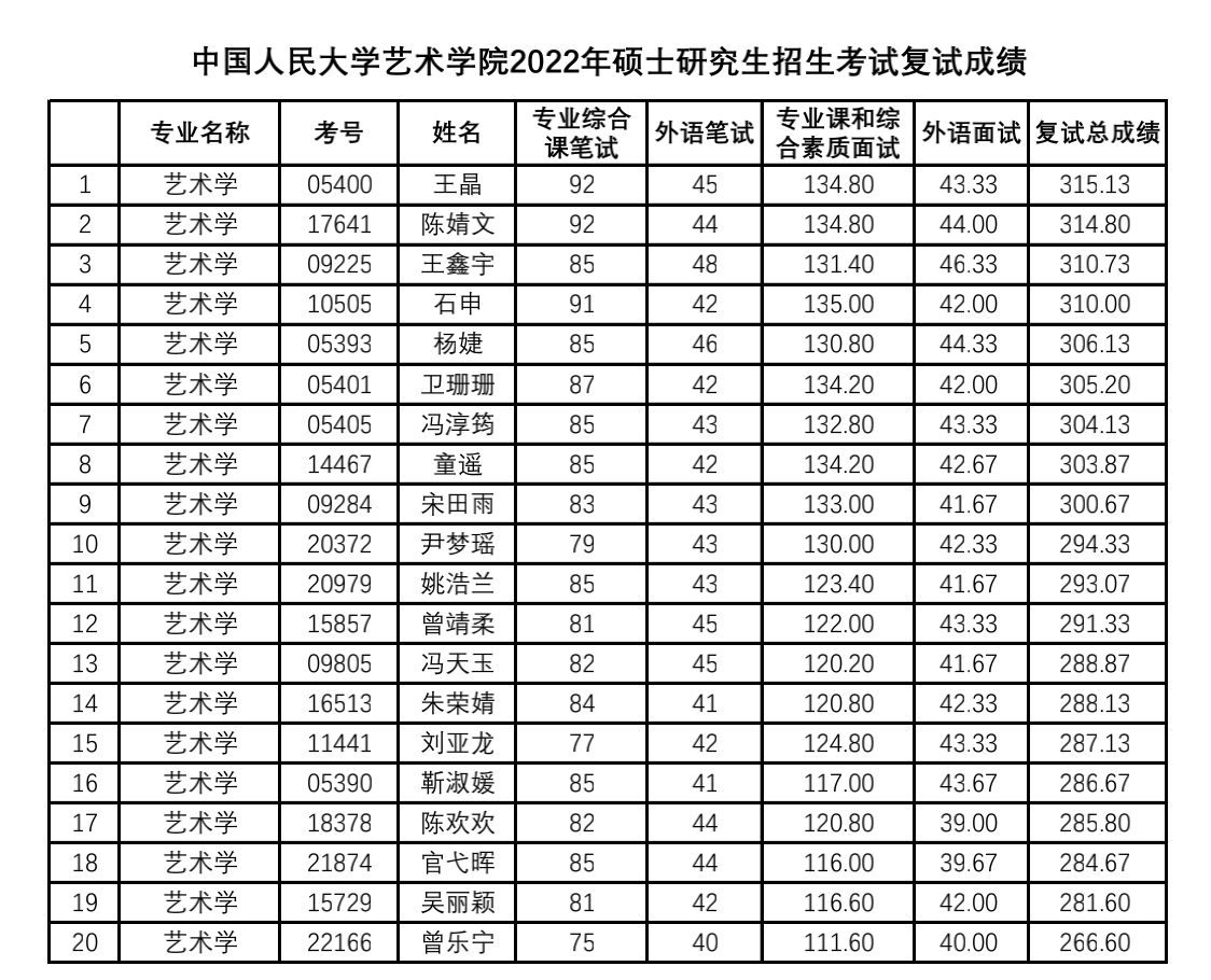 中國人民大學(xué)藝術(shù)學(xué)院2022年考研復(fù)試成績公示 發(fā)布時間:2022-04-11 中國人民大學(xué)藝術(shù)學(xué)院2022年考研復(fù)試成績公示 上一篇:中國人民大學(xué)藝術(shù)學(xué)院2022年考研復(fù)試名單 下一篇:中國人民大學(xué)藝術(shù)學(xué)院2023年考研招生目錄