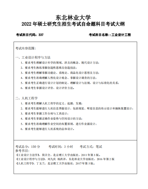 東北林業(yè)大學(xué)2022年考研考試大綱-工業(yè)設(shè)計(jì)工程 發(fā)布時(shí)間:2021-09-20 東北林業(yè)大學(xué)2022年考研考試大綱-工業(yè)設(shè)計(jì)工程 上一篇:東北林業(yè)大學(xué)機(jī)電工程學(xué)院工業(yè)設(shè)計(jì)工程2022年考研錄取名單(非全日制) 下一篇:東北林業(yè)大學(xué)材料學(xué)院2023年考研招生目錄