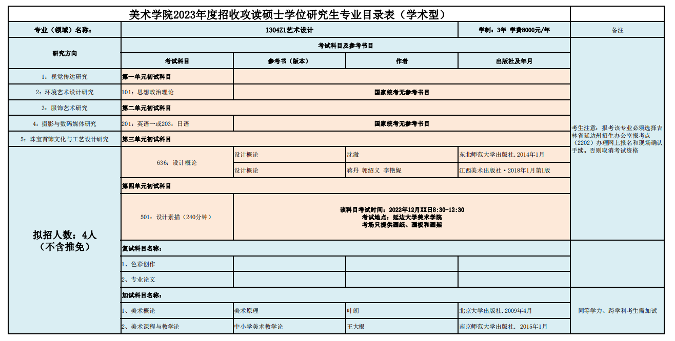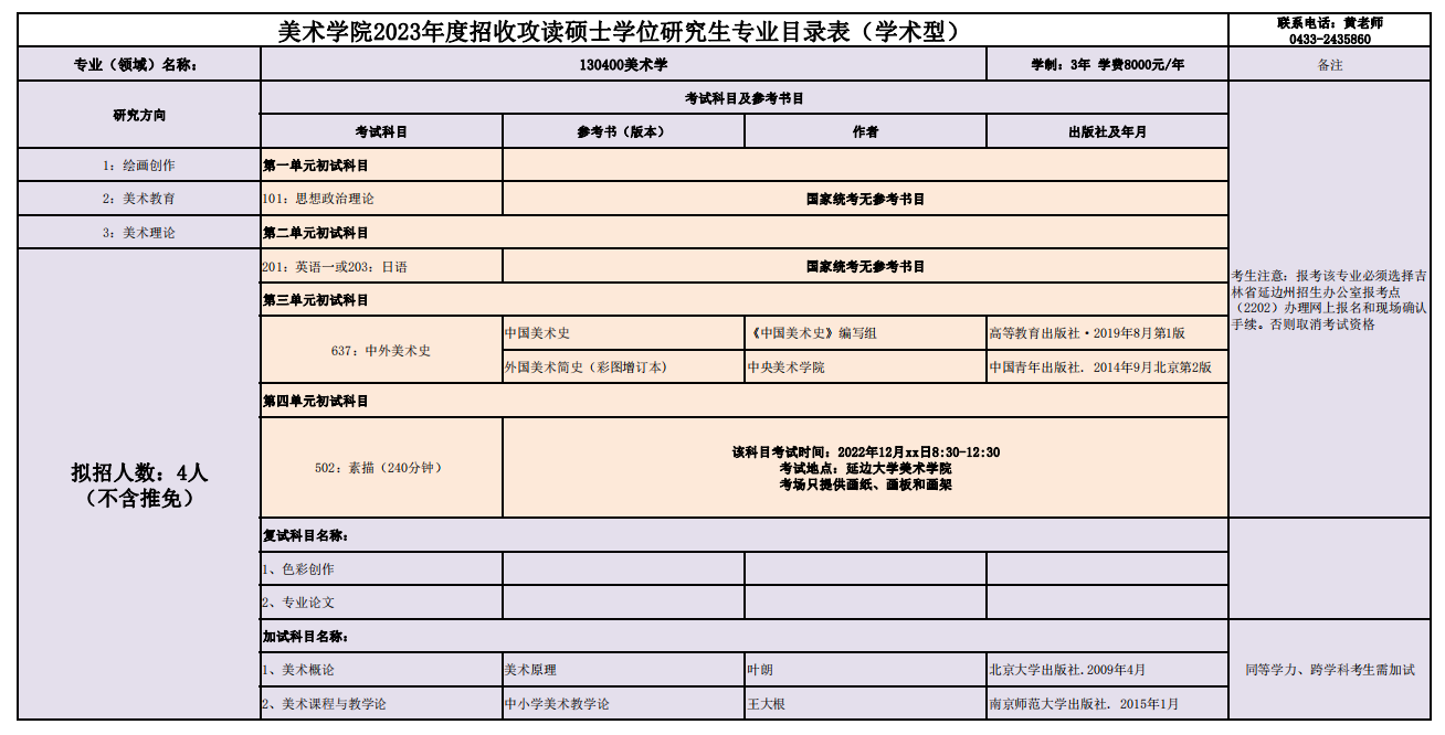 延邊大學(xué)美術(shù)學(xué)院2023年考研招生目錄 發(fā)布時(shí)間:2022-09-15 延邊大學(xué)美術(shù)學(xué)院2023年考研招生目錄更多考研信息咨詢微信18911516590 上一篇:延邊大學(xué)2022年考研復(fù)試錄取工作辦法 下一篇:延邊大學(xué)美術(shù)學(xué)院2024年考研招生目錄