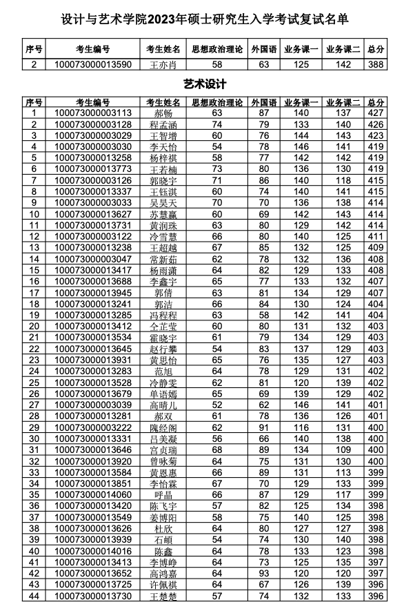 北京理工大學(xué)設(shè)計(jì)藝術(shù)學(xué)院2023年考研復(fù)試名單公布 發(fā)布時間:2023-03-22 北京理工大學(xué)設(shè)計(jì)藝術(shù)學(xué)院2023年考研復(fù)試名單公布 上一篇:北京理工大學(xué)設(shè)計(jì)藝術(shù)學(xué)院2023年考研復(fù)試線(學(xué)院線)及招生人數(shù) 下一篇:北京理工大學(xué)設(shè)計(jì)藝術(shù)學(xué)院2023年考研復(fù)試安排公告