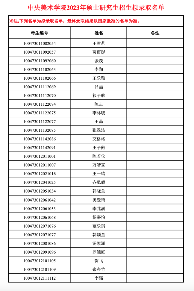 中央美術(shù)學(xué)院2023年考研錄取名單 發(fā)布時間:2023-04-03 中央美術(shù)學(xué)院2023年考研錄取名單 上一篇:中央美術(shù)學(xué)院設(shè)計學(xué)院2023年考研復(fù)試分?jǐn)?shù)線 下一篇:中央美術(shù)學(xué)院設(shè)計學(xué)院2024年考研招生目錄