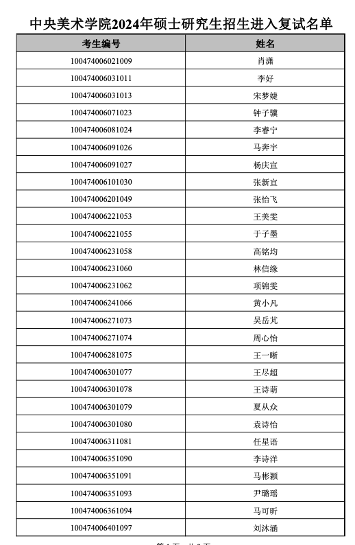 中央美術(shù)學(xué)院2024年考研復(fù)試名單發(fā)布 發(fā)布時間:2024-03-15 上一篇:中央美術(shù)學(xué)院2024年考研復(fù)試分?jǐn)?shù)線 下一篇:中央美術(shù)學(xué)院2024年考研復(fù)試錄取名單