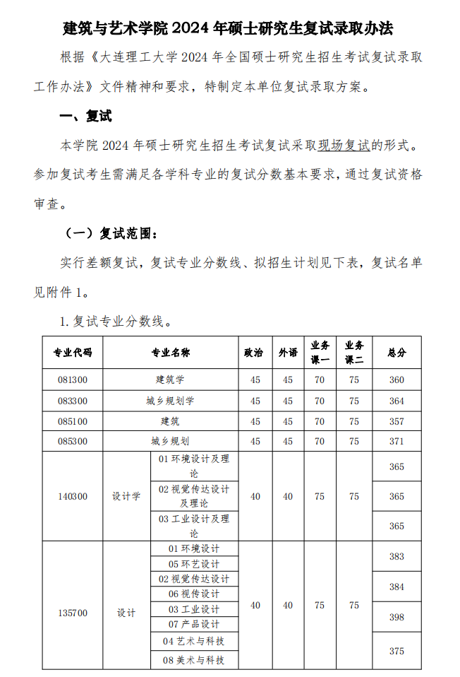 大連理工大學(xué)建筑與藝術(shù)學(xué)院2024年考研復(fù)試分?jǐn)?shù)線及招生人數(shù)
