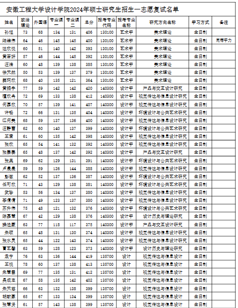 安徽工程大學設計學院2024年考研復試名單 發(fā)布時間:2024-03-29 安徽工程大學設計學院2024年考研復試名單 上一篇:安徽工程大學藝術學院2024年考研復試分數(shù)線及招生人數(shù) 下一篇:安徽工程大學設計學院2024年考研復試錄取名單