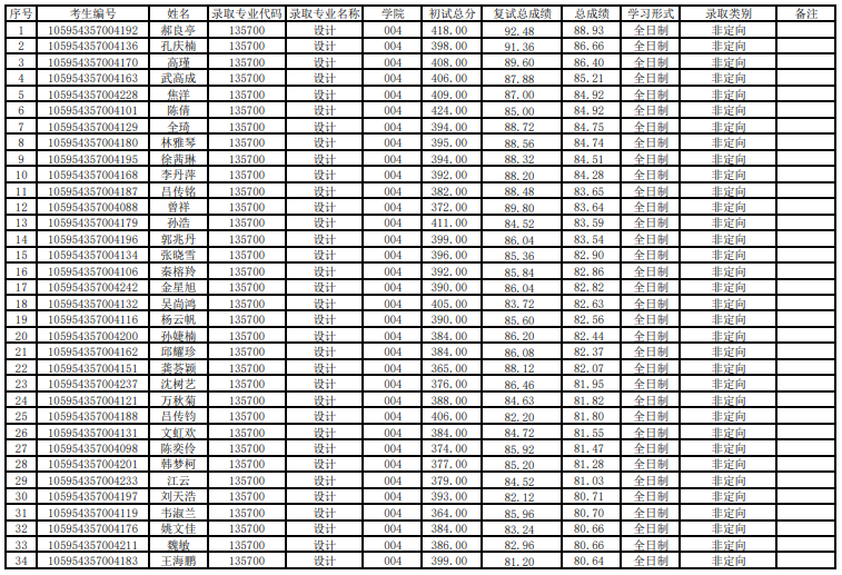 桂林電子科技大學(xué)藝術(shù)設(shè)計(jì)學(xué)院2024年考研復(fù)試錄取名單(一志愿)
