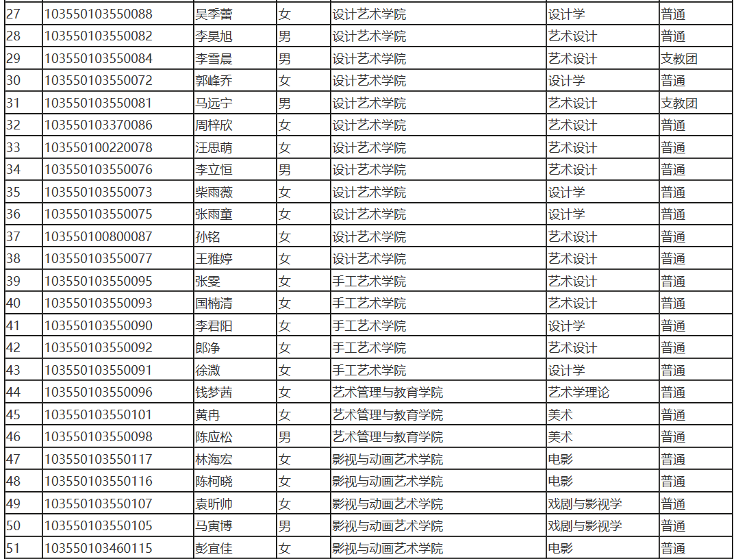 中國(guó)美術(shù)學(xué)院2020年碩士研究生推免生錄取名單公示