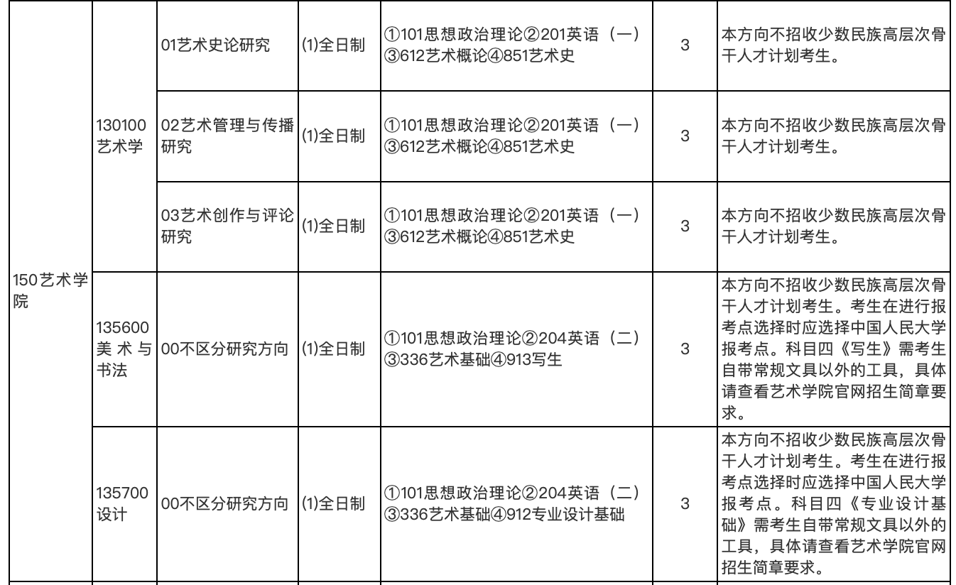 中國(guó)人民大學(xué)藝術(shù)學(xué)院2025年考研招生目錄