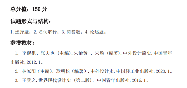武漢輕工大學(xué)藝術(shù)設(shè)計(jì)學(xué)院2025年設(shè)計(jì)考研參考書(shū)目及考試大綱:336藝術(shù)基礎(chǔ) 發(fā)布時(shí)間:2024-10-09 上一篇:武漢輕工大學(xué)藝術(shù)設(shè)計(jì)學(xué)院2025年設(shè)計(jì)考研招生目錄及招生人數(shù) 下一篇:武漢輕工大學(xué)藝術(shù)設(shè)計(jì)學(xué)院2025年設(shè)計(jì)考研參考書(shū)目及考試大綱:920設(shè)計(jì)學(xué)專(zhuān)業(yè)設(shè)計(jì)