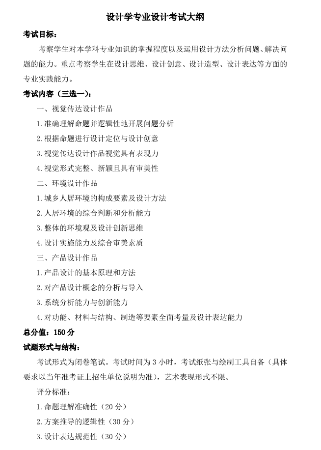 武漢輕工大學(xué)藝術(shù)設(shè)計(jì)學(xué)院2025年設(shè)計(jì)考研參考書目及考試大綱:920設(shè)計(jì)學(xué)專業(yè)設(shè)計(jì) 發(fā)布時(shí)間:2024-10-09 上一篇:武漢輕工大學(xué)藝術(shù)設(shè)計(jì)學(xué)院2025年設(shè)計(jì)考研參考書目及考試大綱:336藝術(shù)基礎(chǔ) 下一篇:武漢輕工大學(xué)藝術(shù)設(shè)計(jì)學(xué)院2024年考研錄取名單(一志愿)