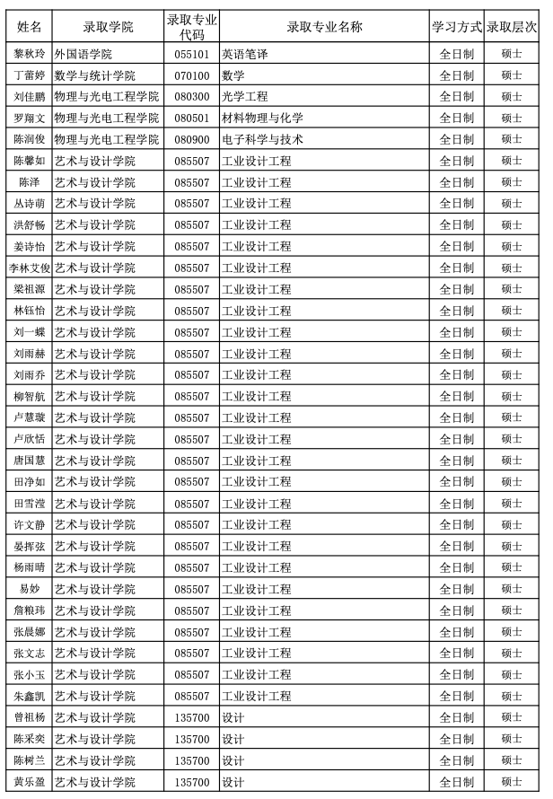 廣東工業(yè)大學(xué)藝術(shù)與設(shè)計(jì)學(xué)院2025年保研錄取名單