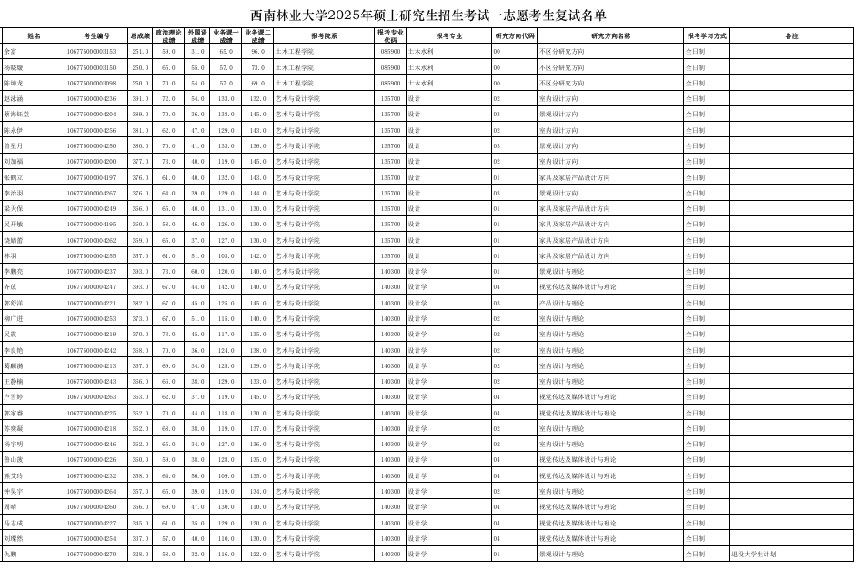 西南林業(yè)大學(xué)藝術(shù)與設(shè)計學(xué)院2025年考研復(fù)試名單發(fā)布 發(fā)布時間:2025-03-17 西南林業(yè)大學(xué)藝術(shù)與設(shè)計學(xué)院2025年考研復(fù)試名單發(fā)布 上一篇:西南林業(yè)大學(xué)藝術(shù)與設(shè)計學(xué)院2025年考研復(fù)試分數(shù)線發(fā)布 下一篇:西南林業(yè)大學(xué)藝術(shù)設(shè)計學(xué)院2025年考研擬錄取名單