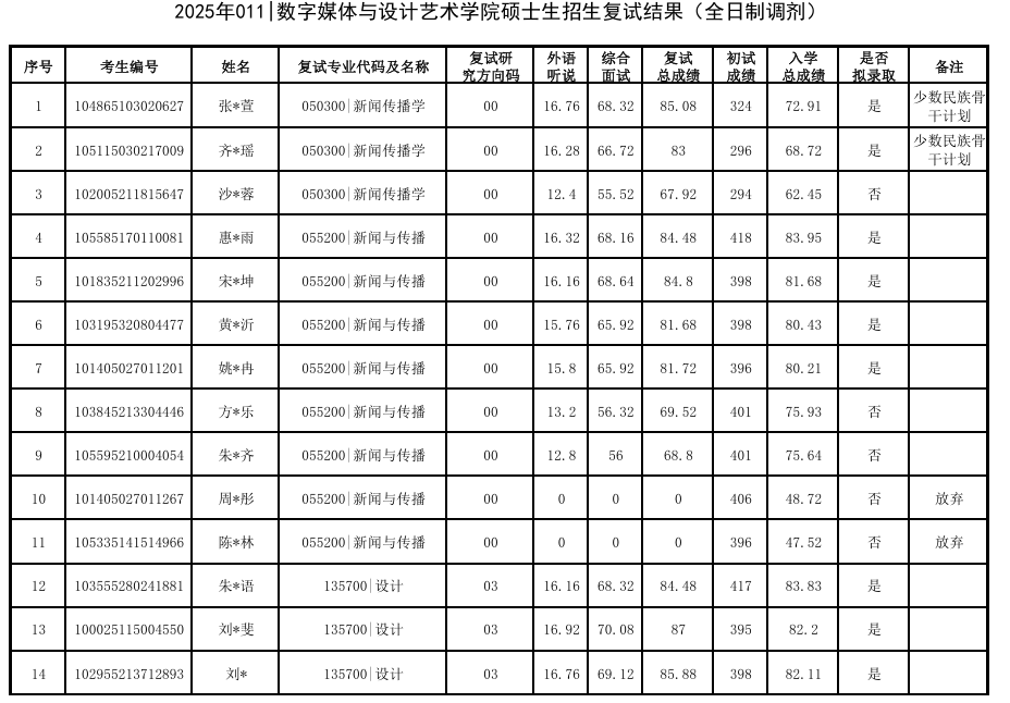 北京郵電大學數字媒體與設計藝術學院2025年考研招生復試結果(全日制調劑) 發(fā)布時間:2025-04-13 上一篇:北京郵電大學數字媒體與設計藝術學院2025年考研招生復試結果(第一批) 下一篇:北京郵電大學數字媒體與設計藝術學院2025年考研招生復試結果(非全日制調劑)